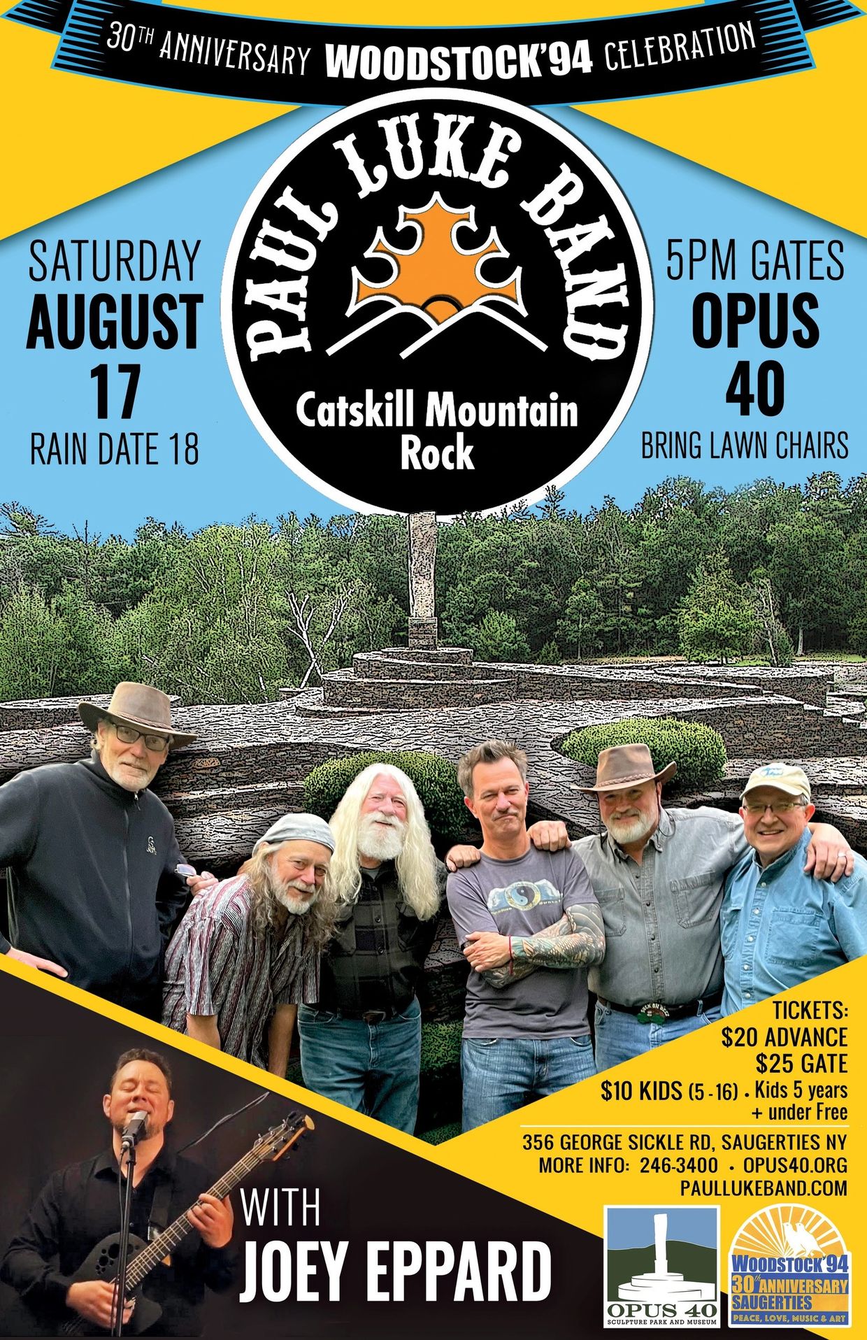 August 17 – Special Concert featuring The Paul Luke Band and Joey Eppard at Opus 40. Tickets are $20 adv. / $25 gate at https://opus40.org/event/woodstock-94-celebration-with-paul-luke-band-joey-eppard/