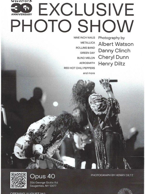 August 16- Gallery opening of a collection of photographs of Woodstock'94 by renown photographers, Albert Watson, Danny Clinch, Henry Diltz, and Cheryl Dunn at Opus 40. Reception and preview from 5:30pm - 7:30 pm RSVP required at https://opus40.org/event/woodstock-94-show/ . Gallery exhibit through Sept 17. Free